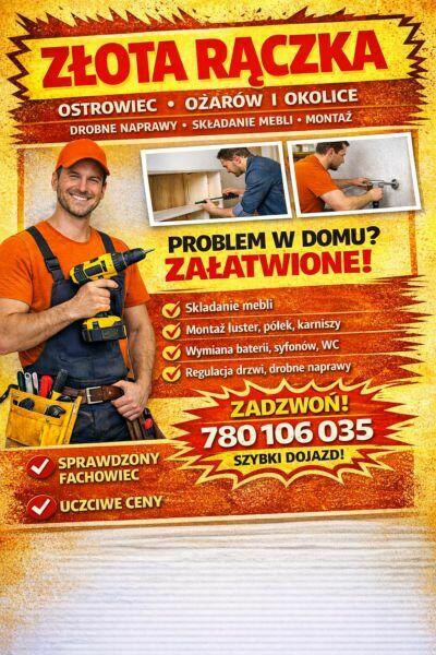 Witam ! Oferuję pomoc w naprawach domowych. Posiadam własne narzędzia.Kontakt tylko przez telefon, jeżeli nie odbieram ...